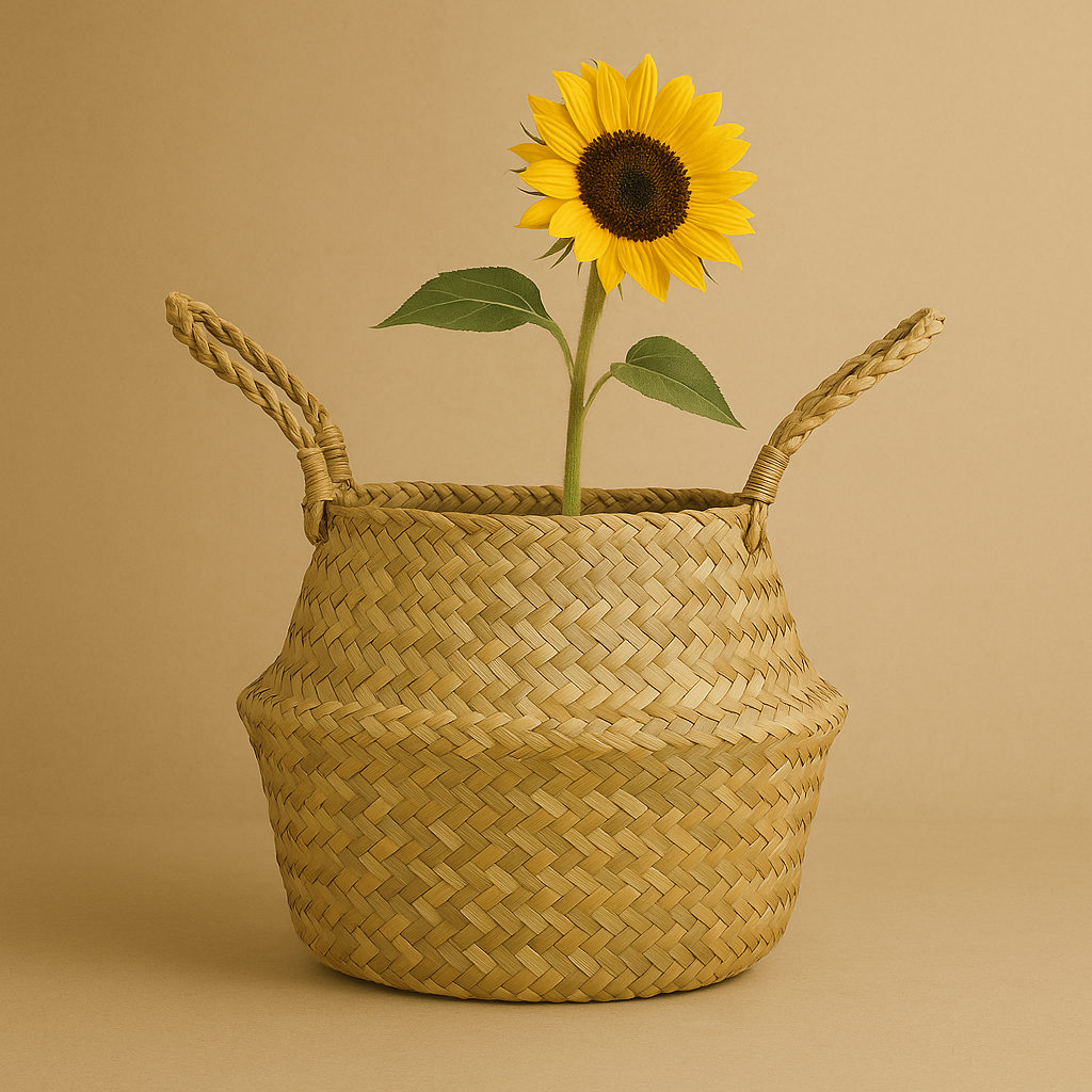 - Woven seagrass pot, representing grounding and growth from the earth up